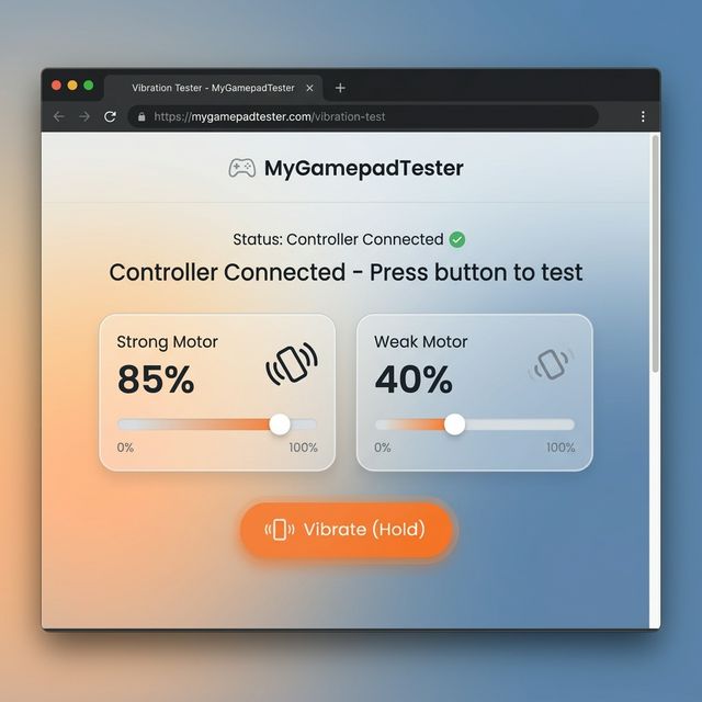 A controller vibration test is a diagnostic tool that checks whether your gamepad's rumble motors are working correctly. You connect your controller, run the test, and instantly see whether the hardware is responding to vibration commands.